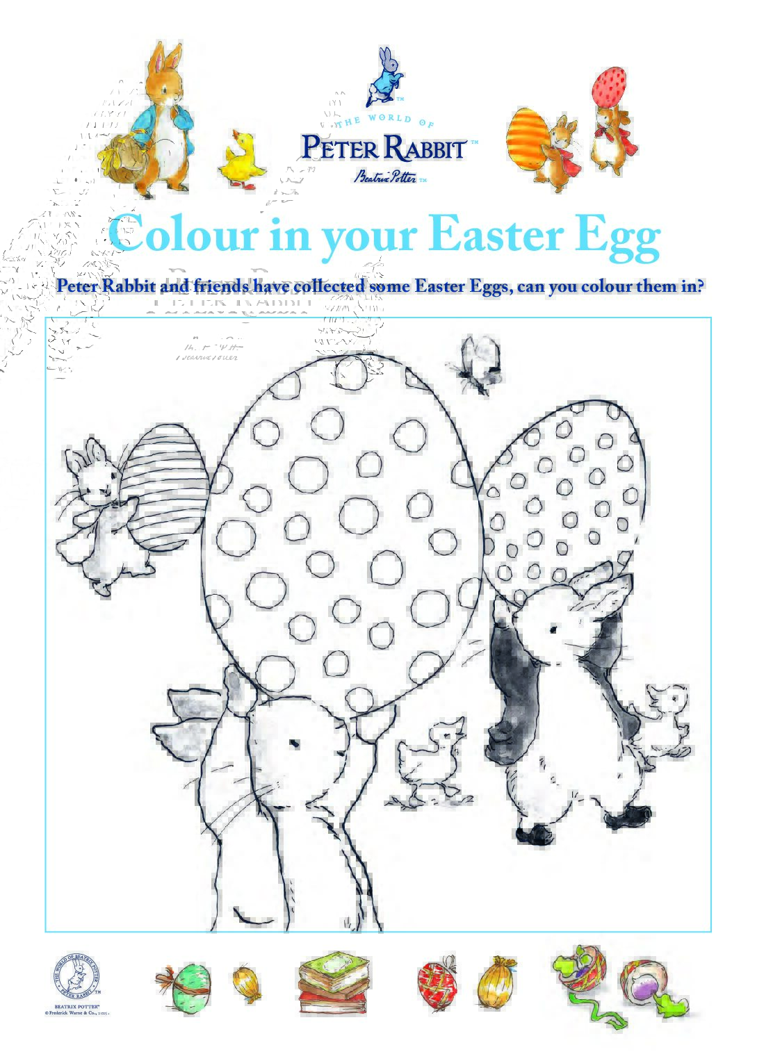 Peter and his friends are collecting Easter Eggs, download the colouring sheet below for little bunnies to colour in!