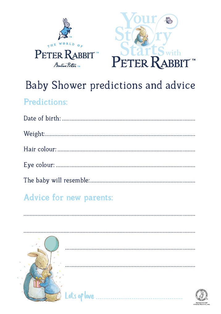 Print this Peter Rabbit template for guests to fill in at baby showers