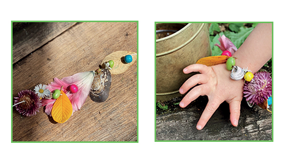 The perfect activity to make use of all of the nature treasures your little one has collected. A sweet bracelet to treasure or to gift to a friend.